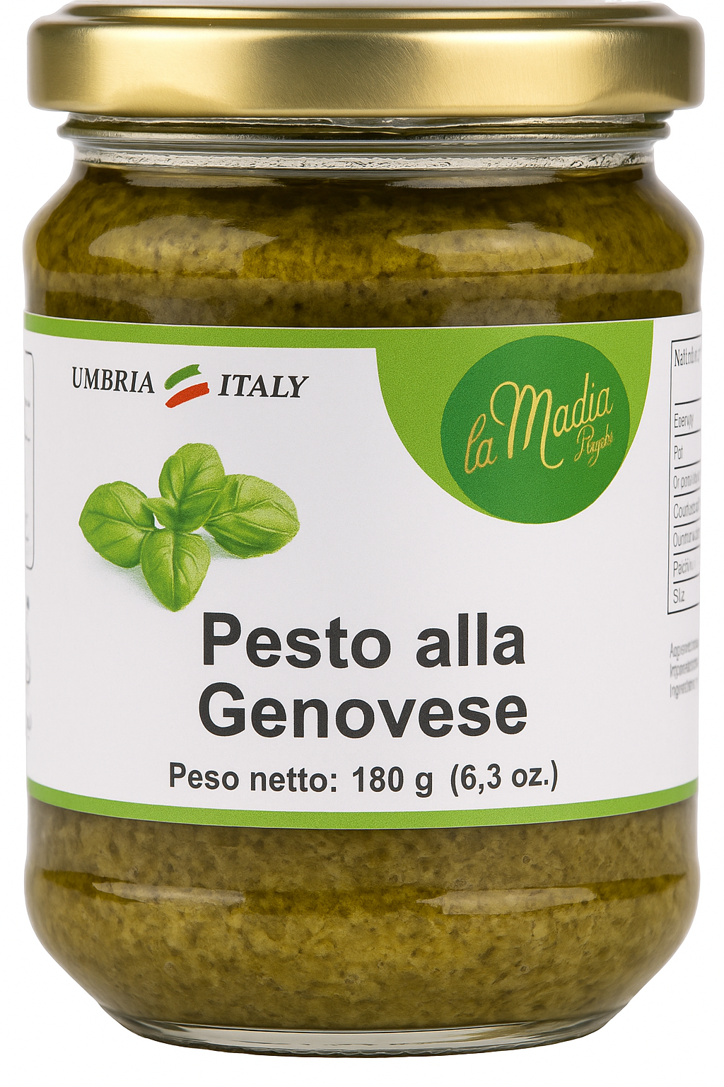 La Madia Regale’s Pesto alla Genovese is a traditional basil pesto crafted in Umbria, Italy. Made with the finest ingredients—fresh basil, Grana Padano cheese, extra virgin olive oil, and pine nuts—this sauce delivers the vibrant, herby punch of authentic Genovese cuisine. Whether tossed into pasta, layered into sandwiches, or spread on crostini, it brings an unmistakable taste of Italy to your kitchen. No preservatives or artificial additives—just pure, premium flavour.